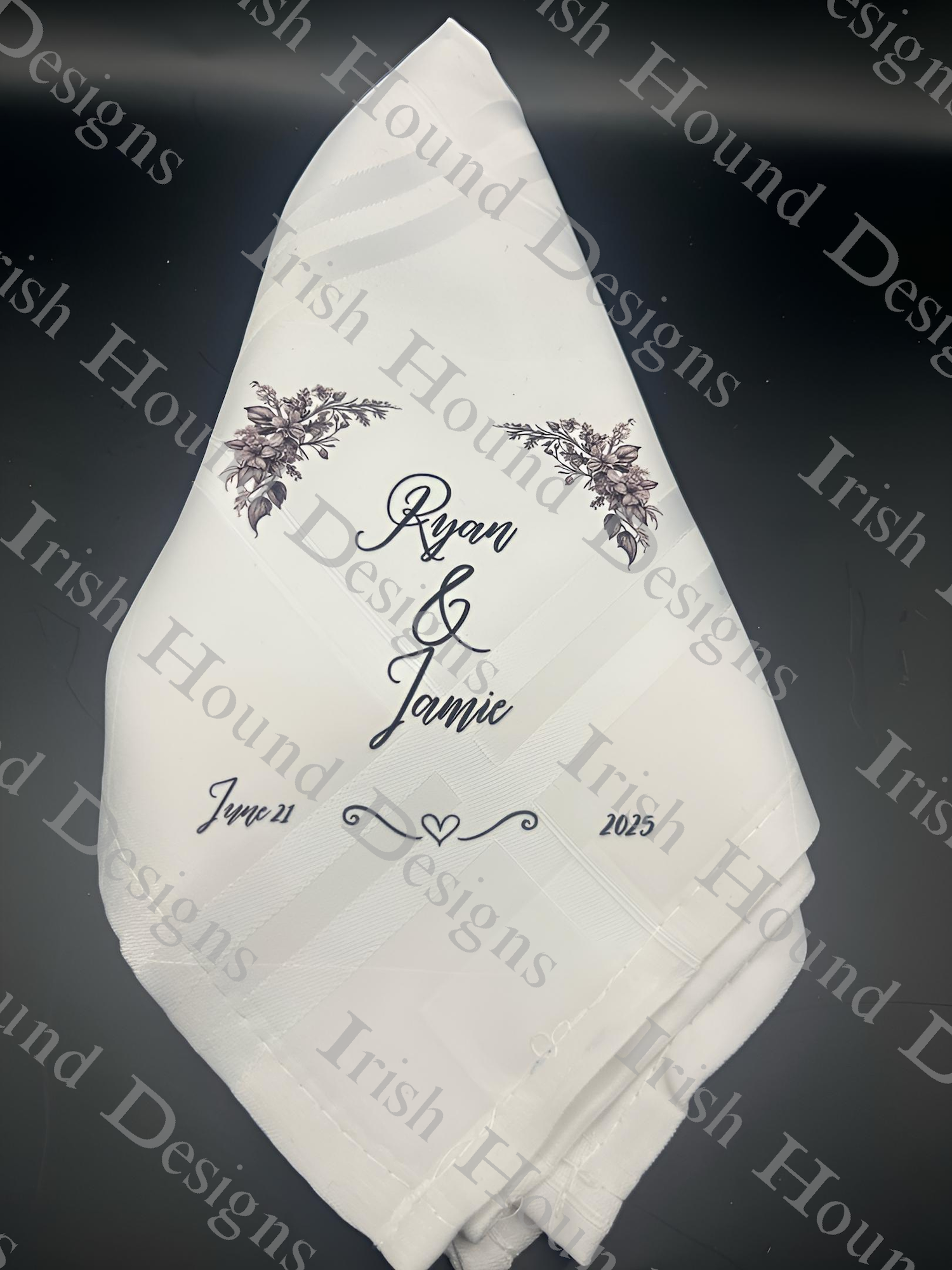 Elevate your special occasions with the IHD Signature Custom Event Napkins. An elegant and personal touch for weddings, anniversaries, parties and other cherished events. These high quality polyester napkins are fully customizable, and unlike traditional monogrammed napkins, our napkins allow you to go beyond initials, offering a canvas for names, sentiments, artistic designs or even full-color photos!