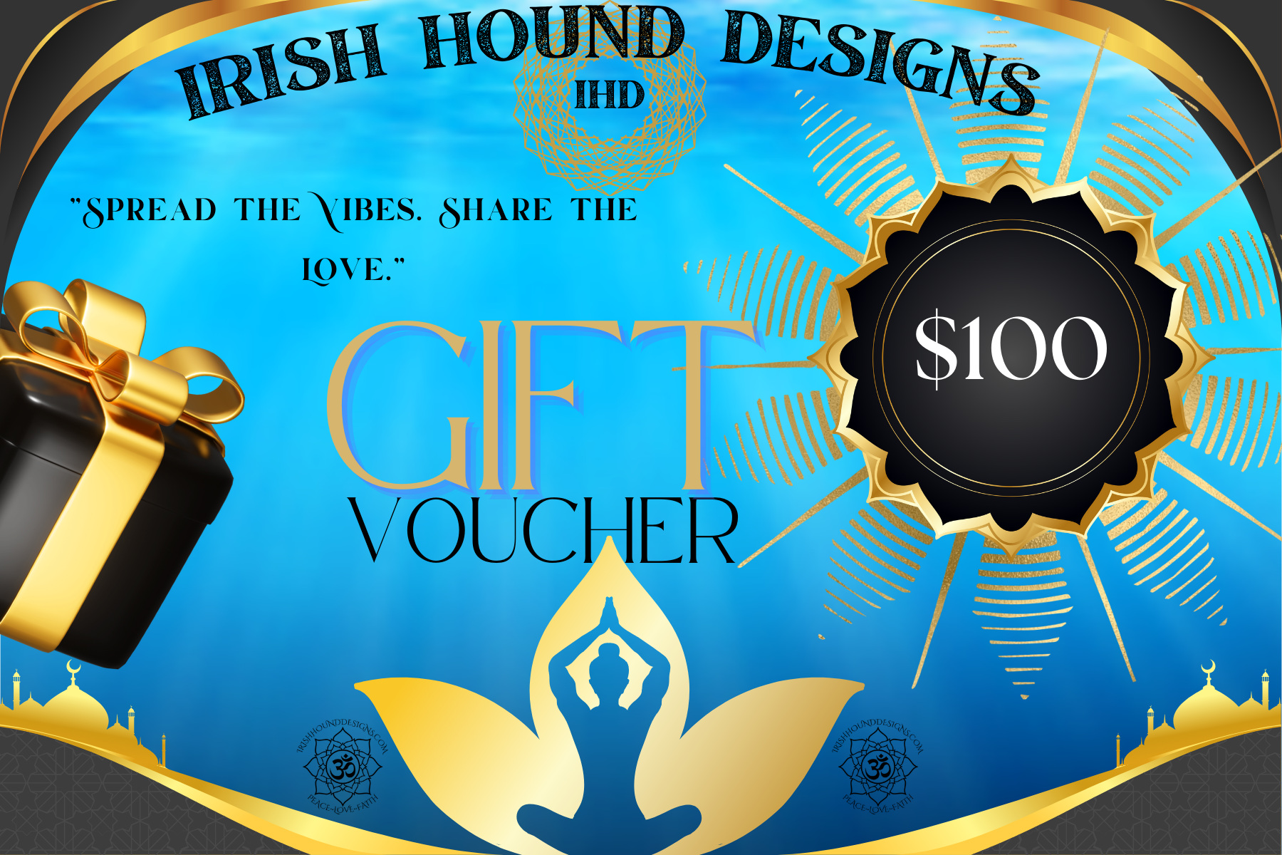 Give the gift of creativity, craftsmanship, and positive energy with an Irish Hound Designs Gift Card. Whether it's for a friend, family member, or a special occasion, this gift card allows the recipient to choose from our curated selection of high-vibration accessories, apparel, and unique treasures. Available in four flexible denominations—$10, $25, $50, and $100—this gift card is the perfect way to share the joy of meaningful, earth-inspired designs. Delivered instantly via email, it's a thoughtful and convenient way to spread the love and connect others to the uplifting energy of Irish Hound Designs.