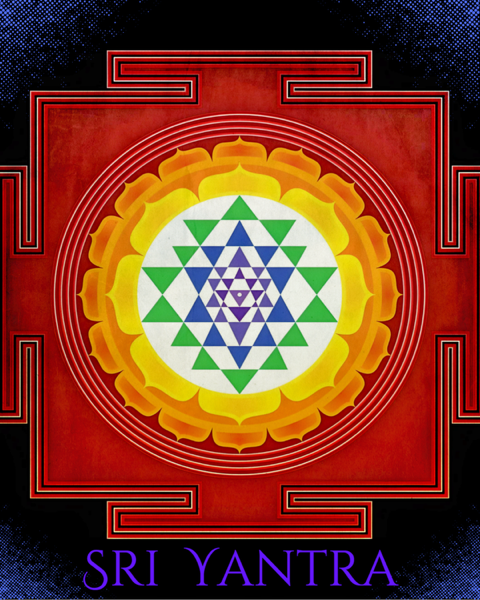 Sri yantra is a sacred geometrical design used for rituals in Hindu Tantra worship and as an aid in yogic meditation. The term comes from the Sanskrit, sri, meaning “radiant” or “splendid,” and yantra, meaning "a mystical diagram."